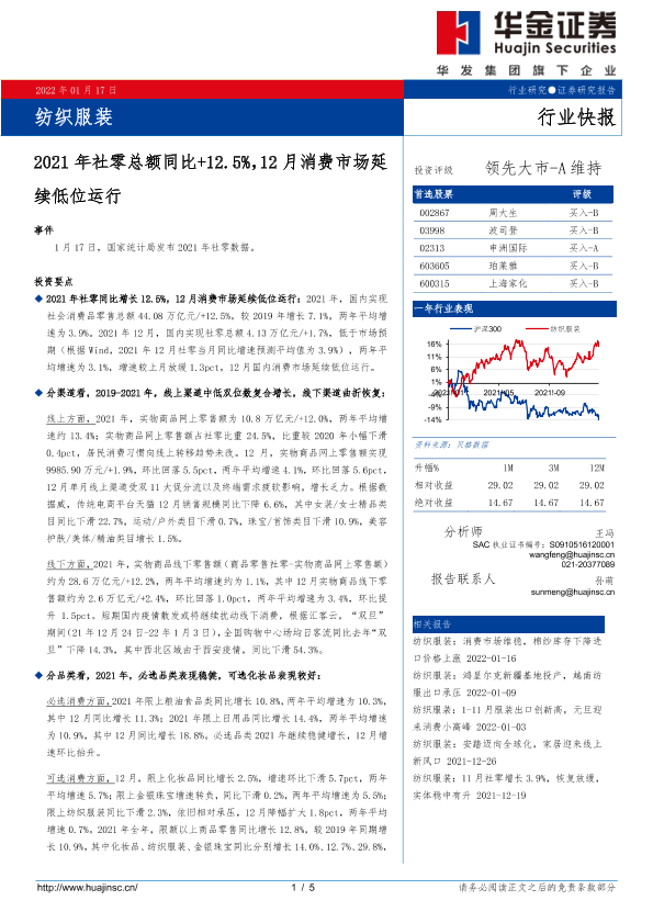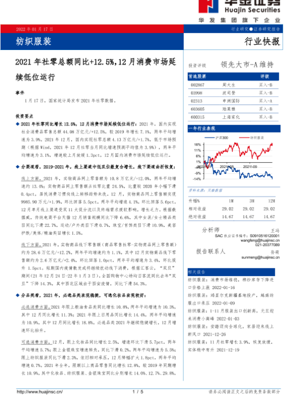 【华金证券】【20220117】2021年社零总额同比+12.5%,12月消费市场延续低位运行-5页