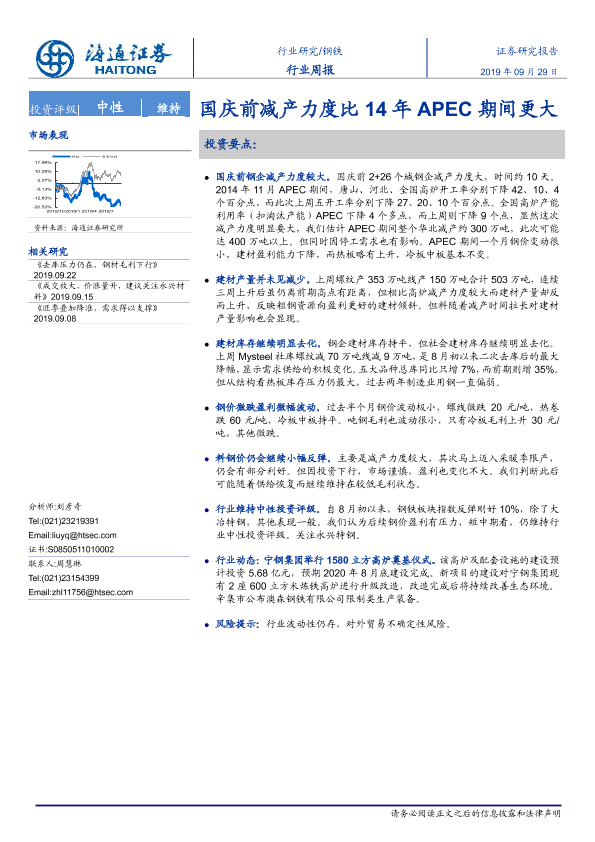 【海通证券】【20190929】20190929-海通证券-钢铁行业周报:国庆前减产力度比14年APEC期间更大-14页