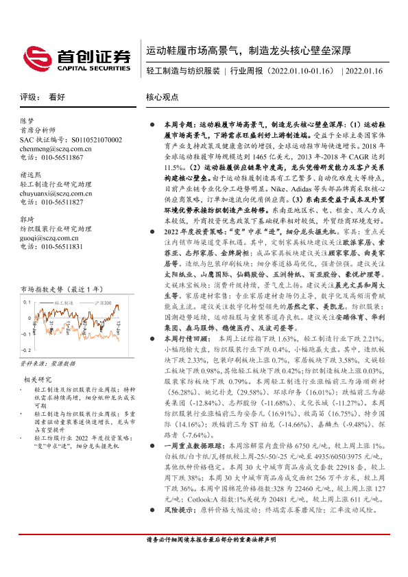【首创证券】【20220116】20220116-首创证券-轻工制造与纺织服装行业周报:运动鞋履市场高景气,制造龙头核心壁垒深厚-19页