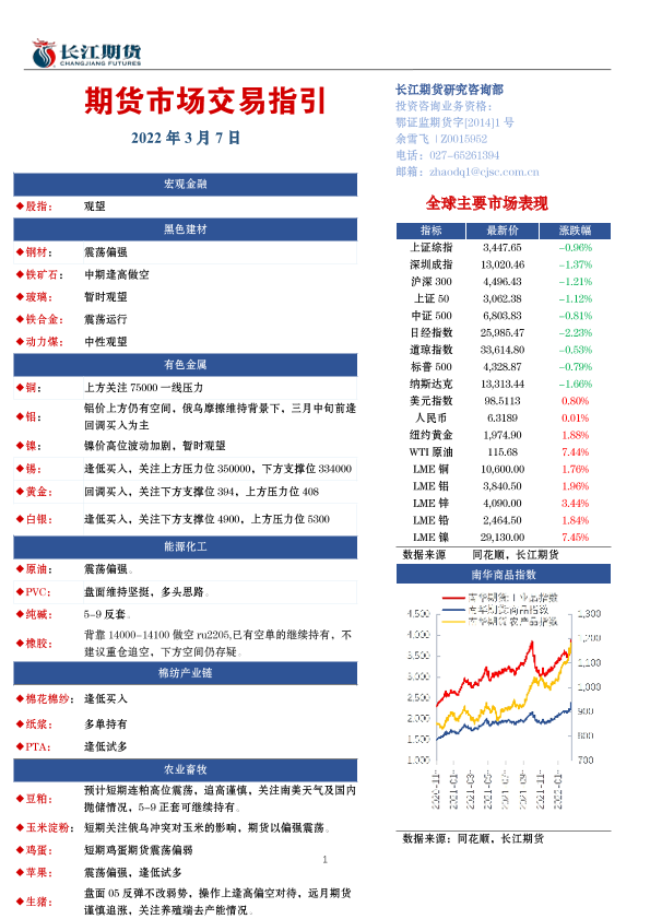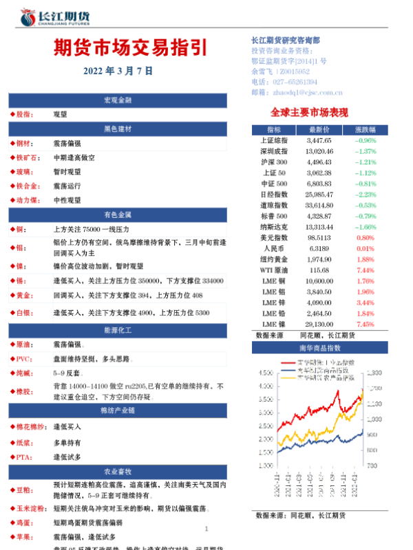 交易指引 大宗商品 期货市场 金融市场 长江期货