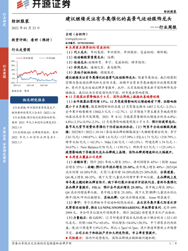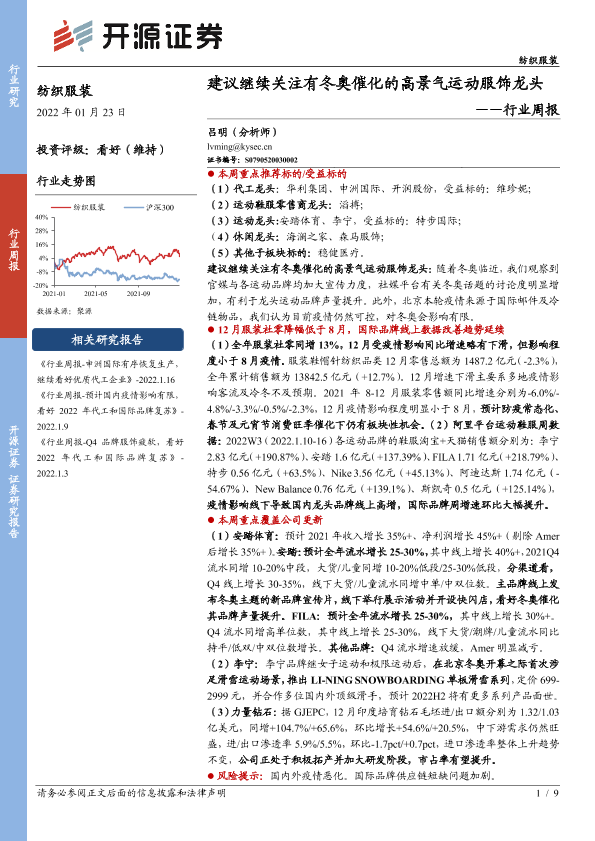 【开源证券】【20220123】纺织服装行业周报:建议继续关注有冬奥催化的高景气运动服饰龙头-9页