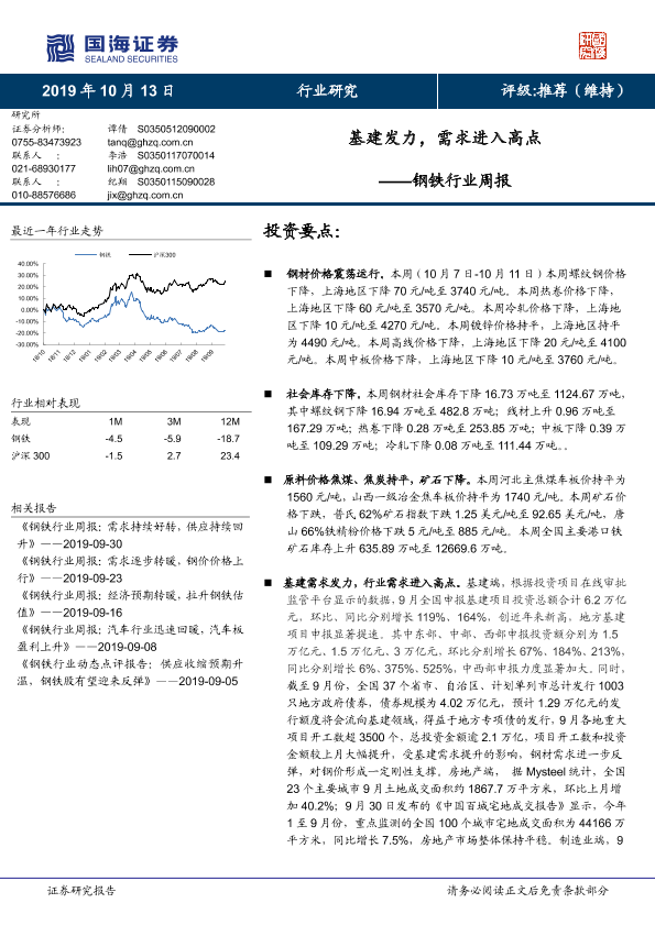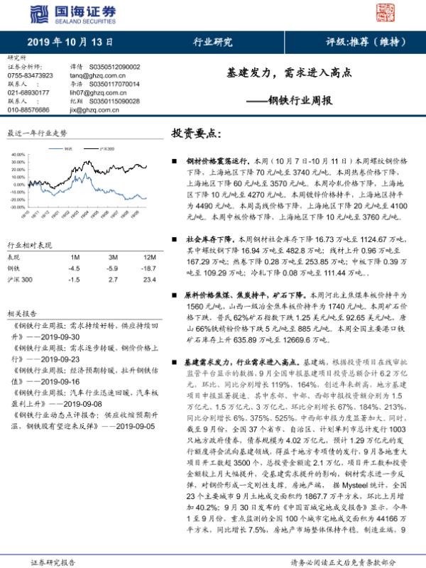【国海证券】【20191013】20191013-国海证券-钢铁行业周报:基建发力,需求进入高点-15页