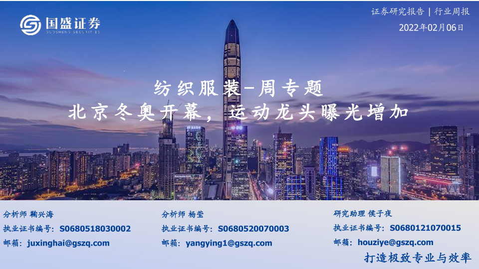【国盛证券】【20220206】20220206-国盛证券-纺织服装-周专题:北京冬奥开幕,运动龙头曝光增加-14页
