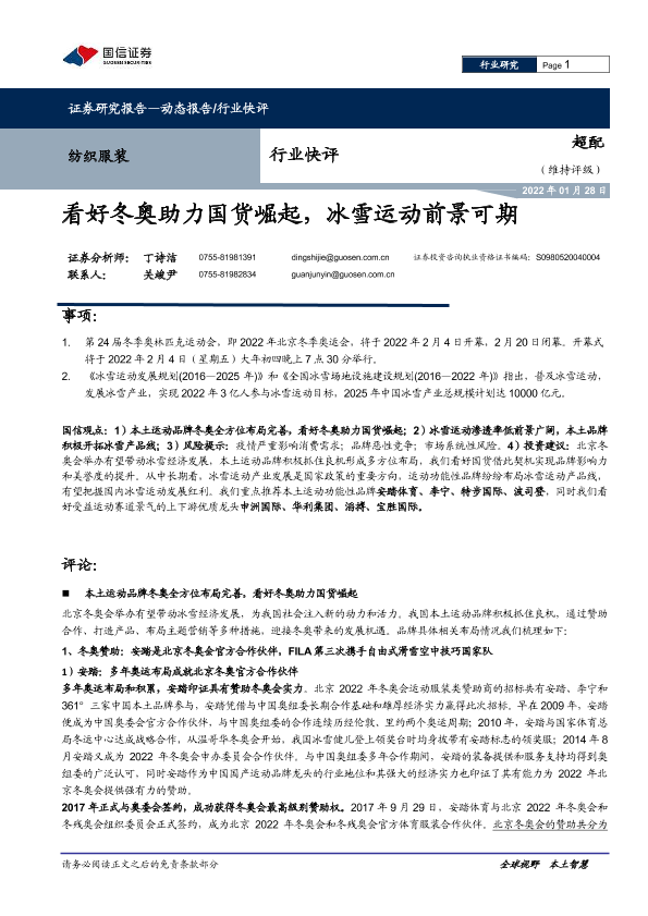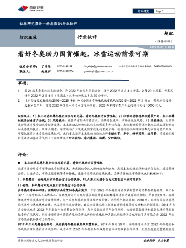 【国信证券】【20220128】纺织服装行业快评:看好冬奥助力国货崛起,冰雪运动前景可期-14页