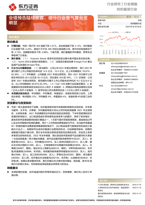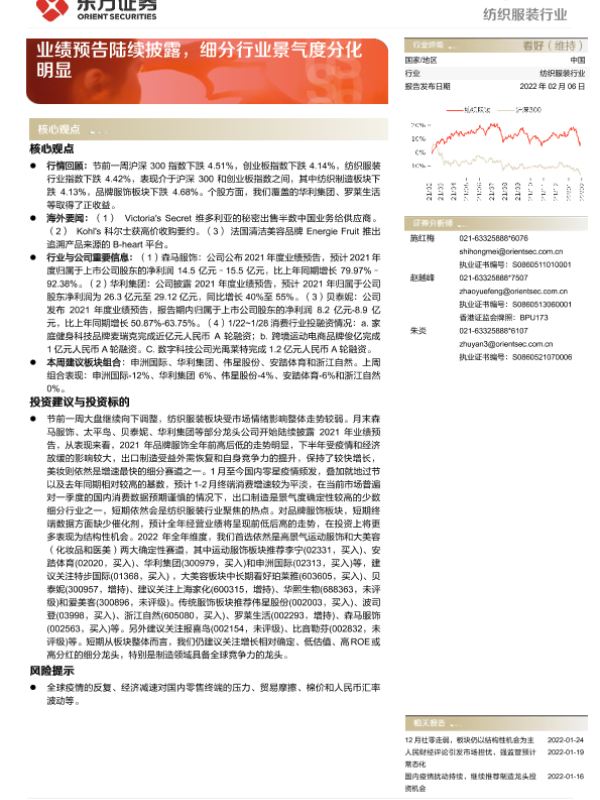 【东方证券】【20220206】20220206-东方证券-纺织服装行业周报:业绩预告陆续披露,细分行业景气度分化明显-9页