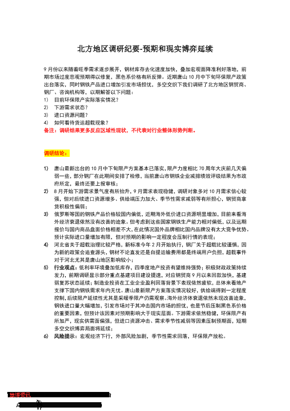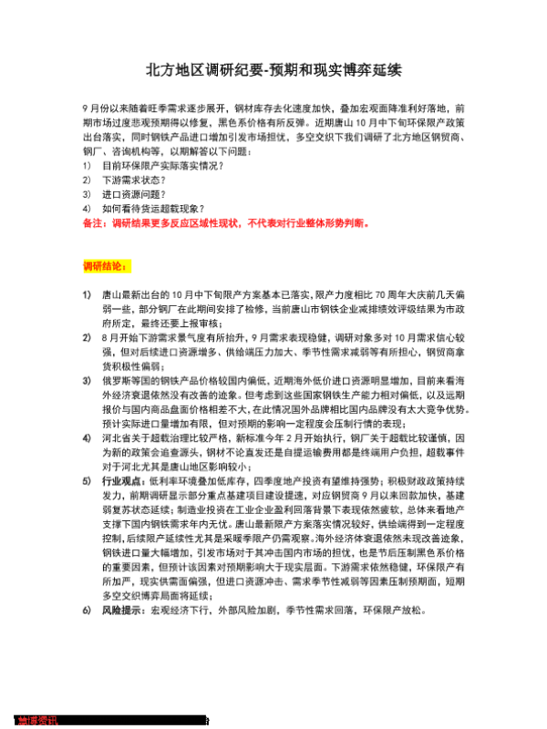 【中泰证券】【20191015】钢铁行业北方地区调研纪要:预期和现实博弈延续-6页