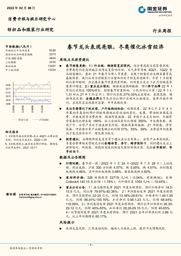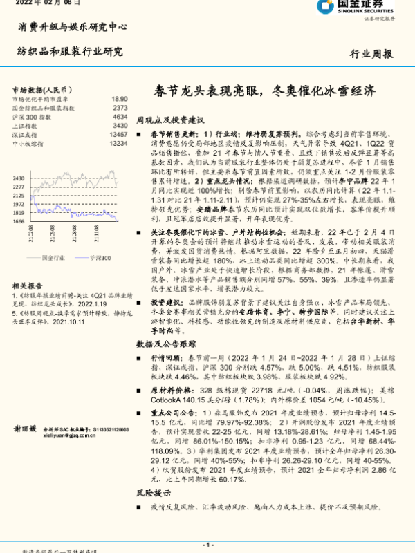 【国金证券】【20220208】20220208-国金证券-纺织品和服装行业研究:春节龙头表现亮眼,冬奥催化冰雪经济-14页