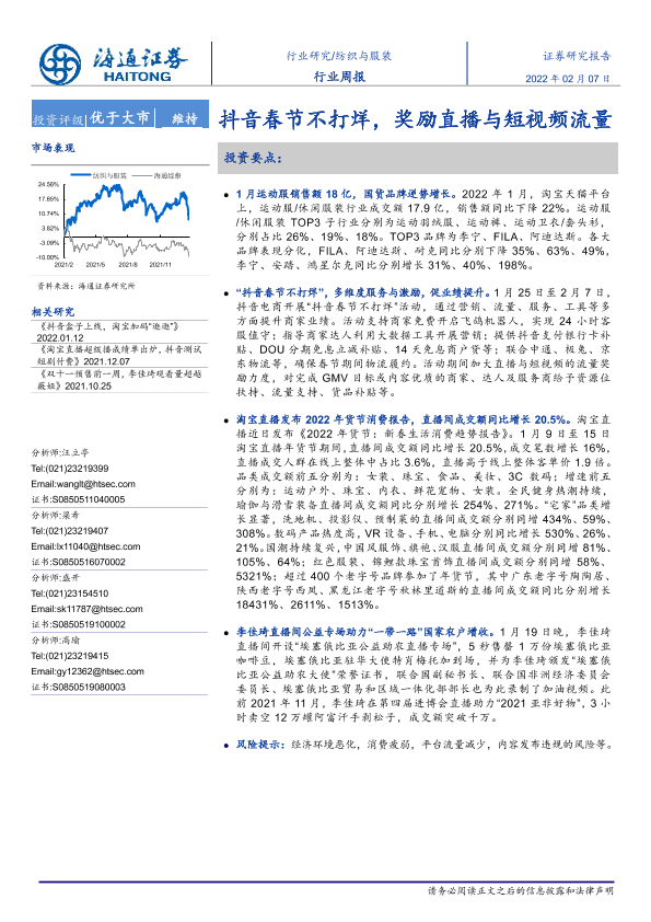 【海通证券】【20220207】20220207-海通证券-纺织与服装行业周报:抖音春节不打烊,奖励直播与短视频流量-10页