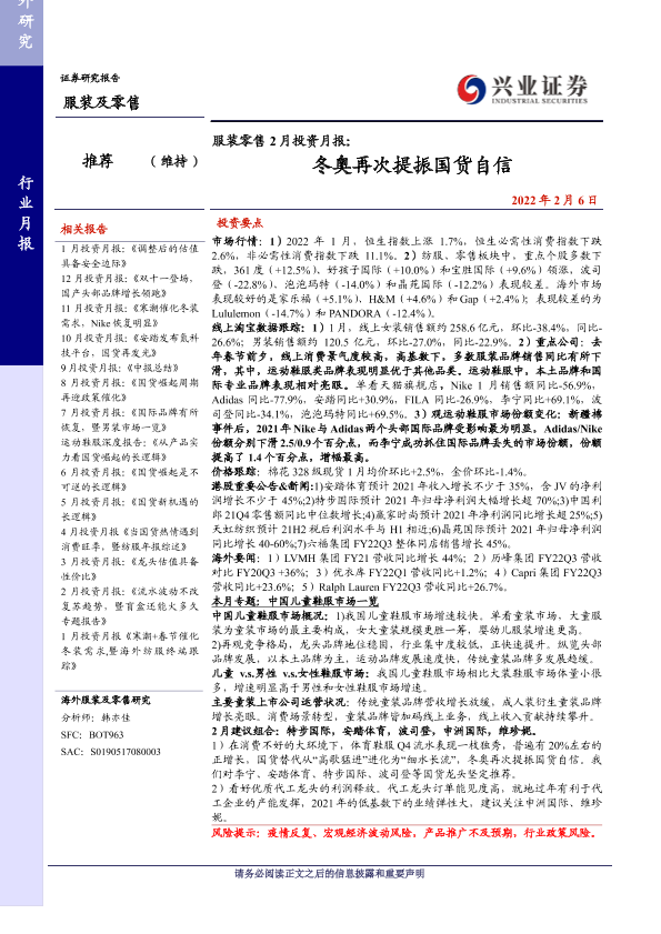 【兴业证券】【20220206】服装零售2月投资月报:冬奥再次提振国货自信-30页