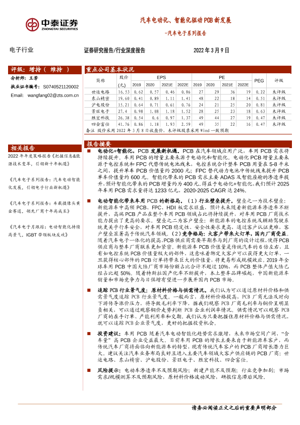 【中泰证券】【20220309】汽车电子行业系列报告:汽车电动化、智能化驱动PCB新发展-32页