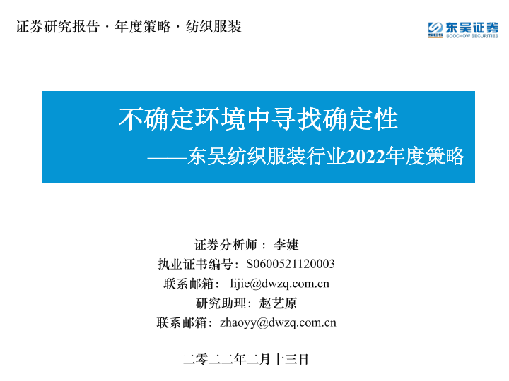 【东吴证券】【20220213】东吴纺织服装行业2022年度策略:不确定环境中寻找确定性-43页