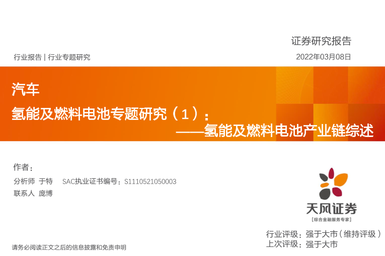 【天风证券】【20220308】汽车行业氢能及燃料电池专题研究(1):氢能及燃料电池产业链综述-64页