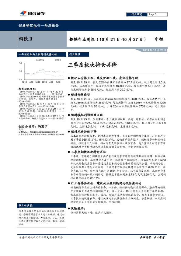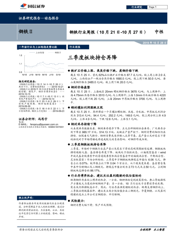 【国信证券】【20191028】20191028-国信证券-钢铁行业周报:三季度板块持仓再降-15页