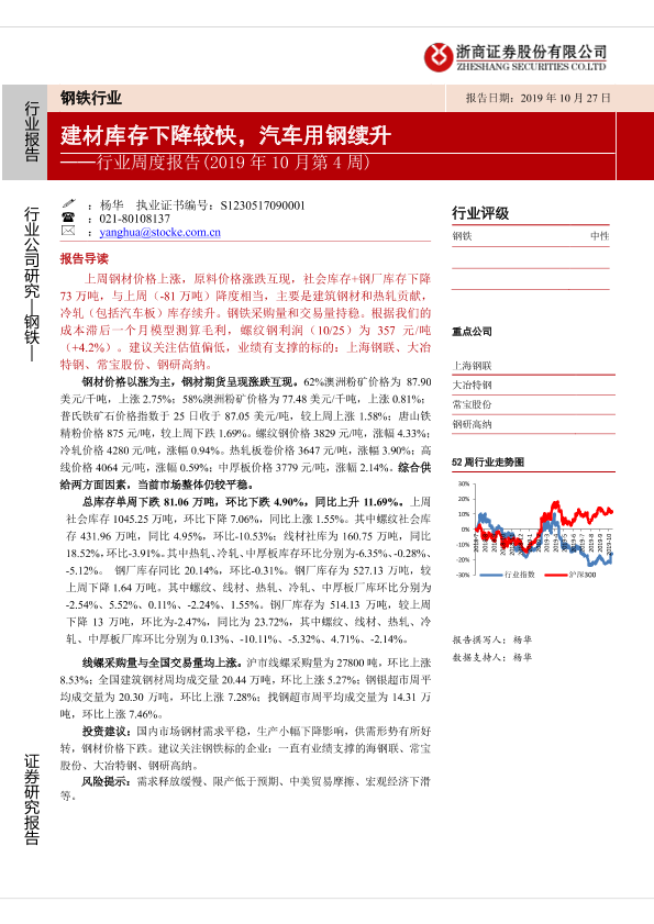 【浙商证券】【20191027】钢铁行业周度报告(2019年10月第4周):建材库存下降较快,汽车用钢续升-16页