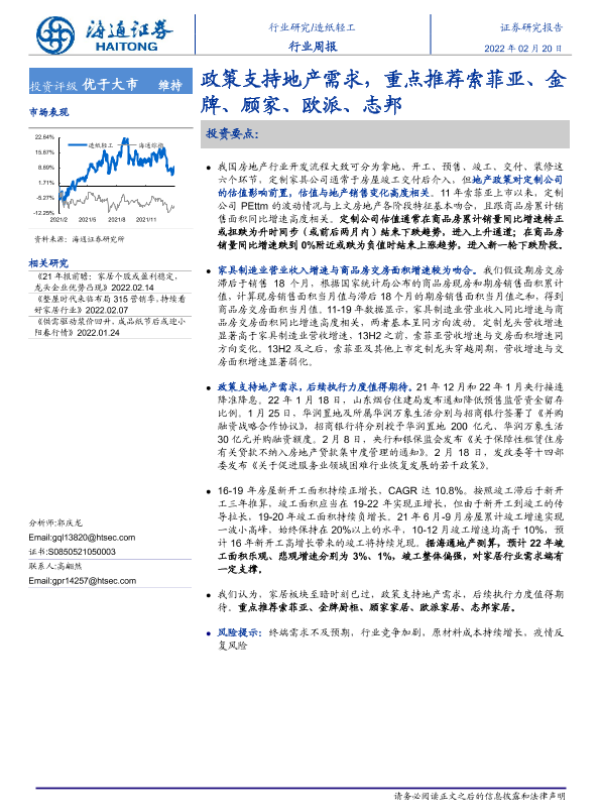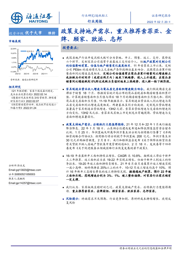 【海通证券】【20220220】20220220-海通证券-造纸轻工行业周报:政策支持地产需求,重点推荐索菲亚、金牌、顾家、欧派、志邦-13页