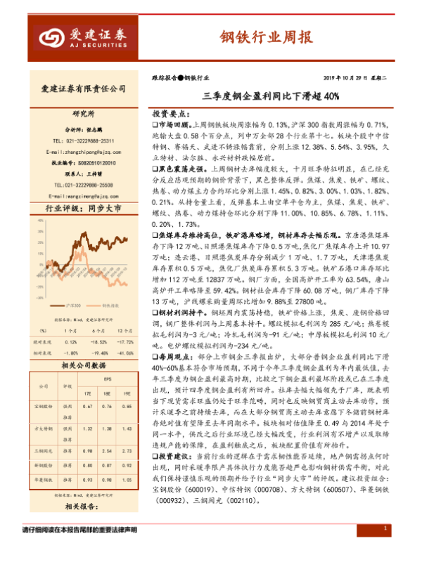 【爱建证券】【20191029】20191029-爱建证券-钢铁行业周报:三季度钢企盈利同比下滑超40%-23页