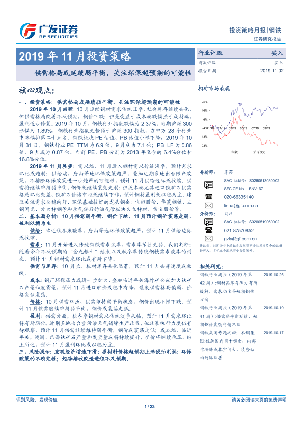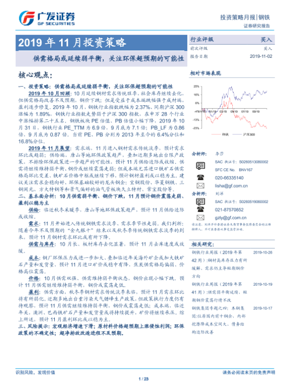 【广发证券】【20191102】2019年11月投资策略:供需格局或延续弱平衡,关注环保超预期的可能性-23页