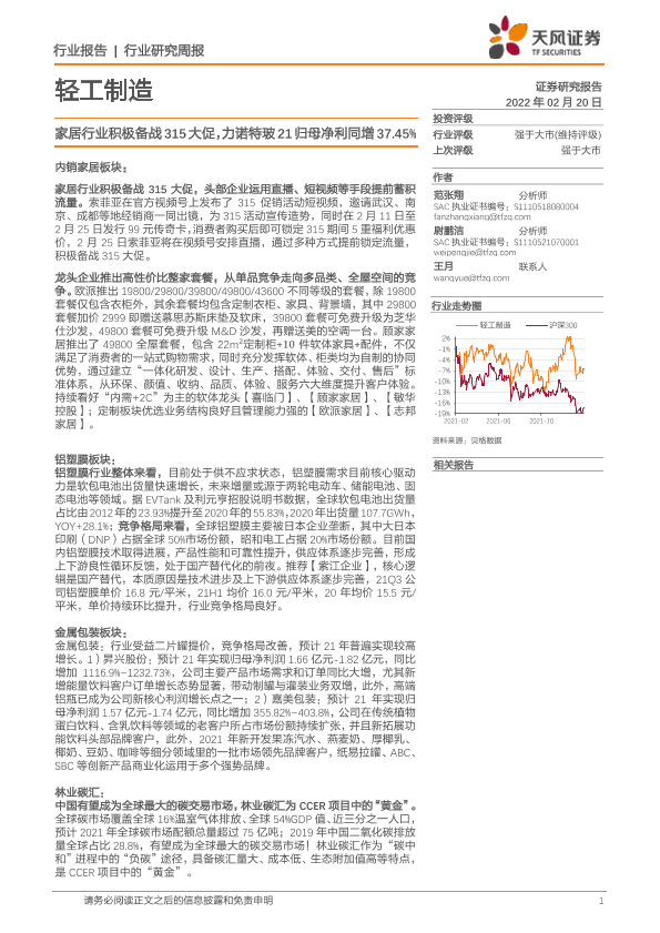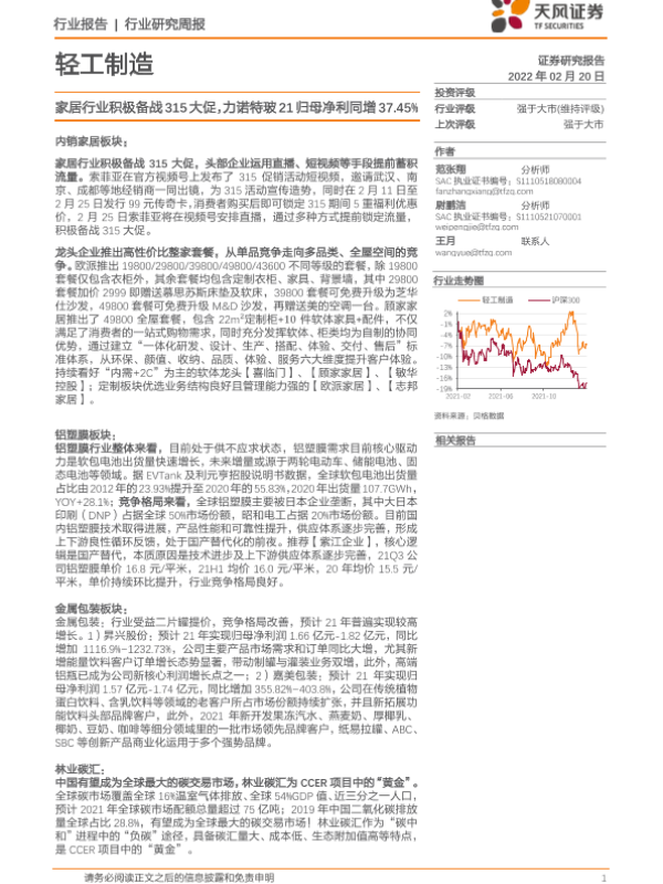 【天风证券】【20220220】20220220-天风证券-轻工制造行业研究周报:家居行业积极备战315大促,力诺特玻21归母净利同增37.45%-23页