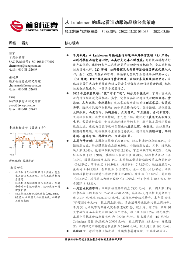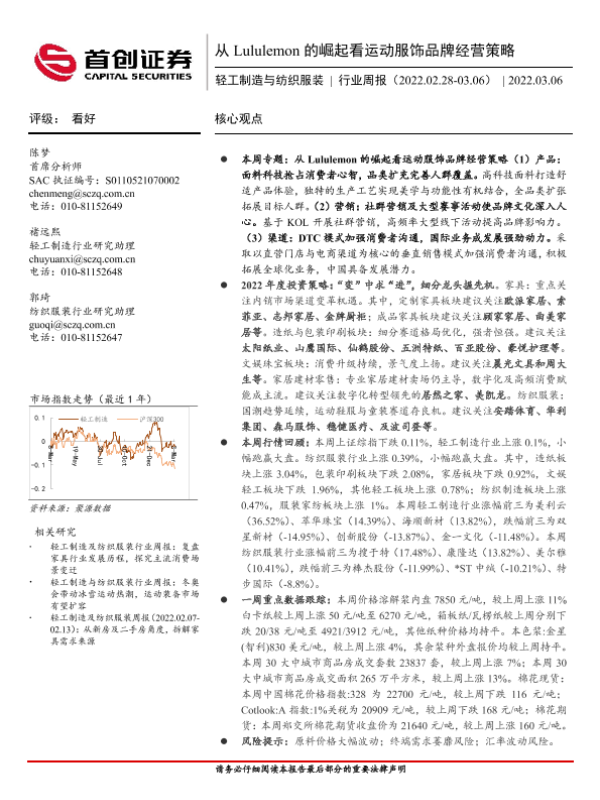 【首创证券】【20220306】20220306-首创证券-轻工制造与纺织服装行业周报:从Lululemon的崛起看运动服饰品牌经营策略-21页