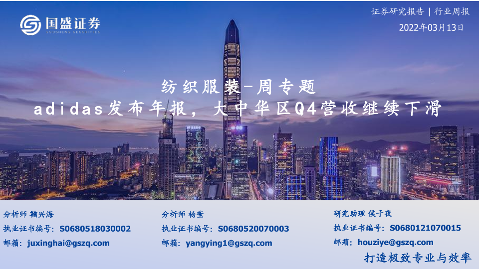 【国盛证券】【20220313】纺织服装周专题:adidas发布年报,大中华区Q4营收继续下滑-15页