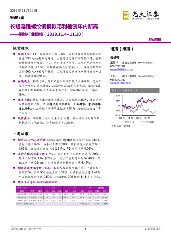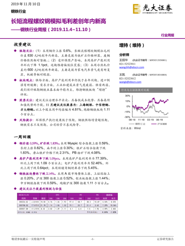 【光大证券】【20191110】20191110-光大证券-钢铁行业周报:长短流程螺纹钢模拟毛利差创年内新高-8页