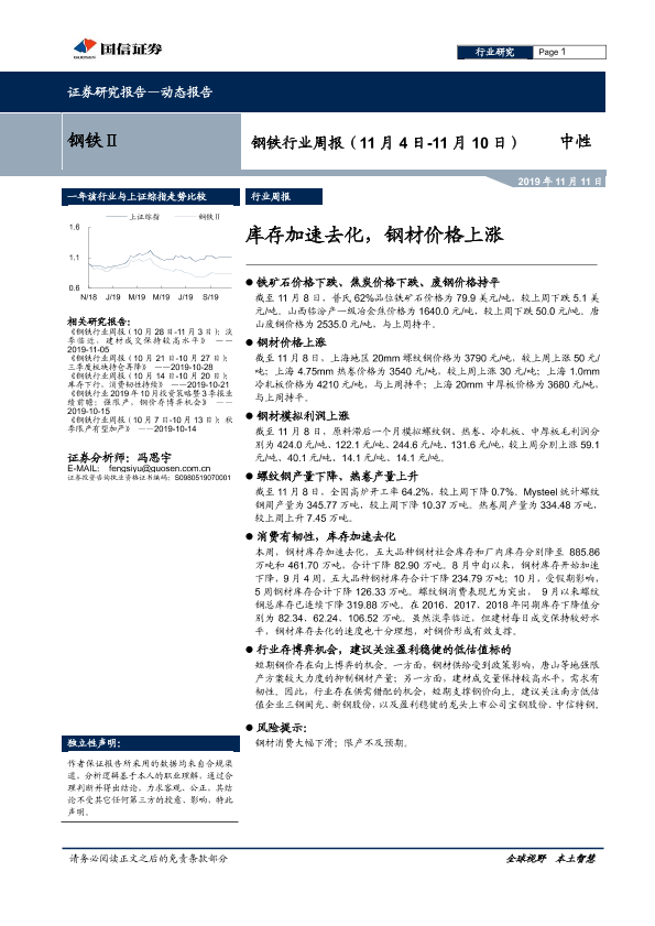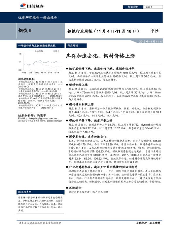 【国信证券】【20191111】钢铁行业周报:库存加速去化,钢材价格上涨-15页