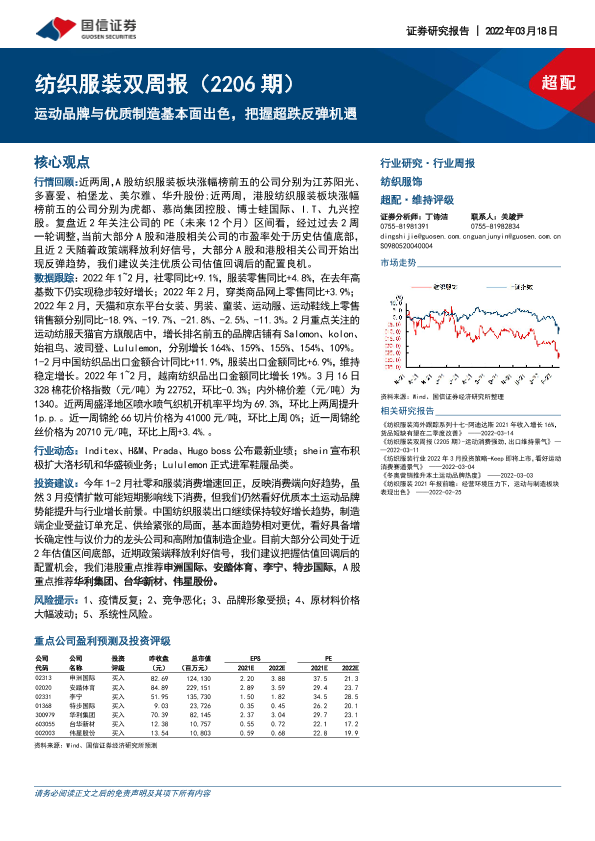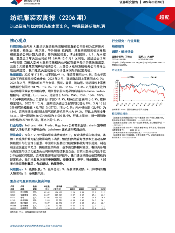 【国信证券】【20220318】20220318-国信证券-纺织服装双周报(2206期):运动品牌与优质制造基本面出色,把握超跌反弹机遇-13页