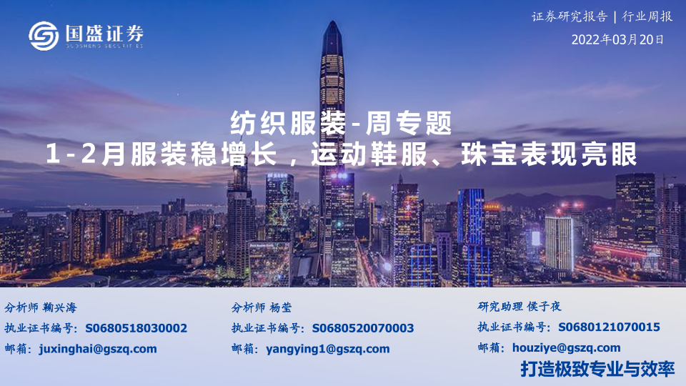 【国盛证券】【20220320】20220320-国盛证券-纺织服装-周专题:1-2月服装稳增长,运动鞋服、珠宝表现亮眼-16页