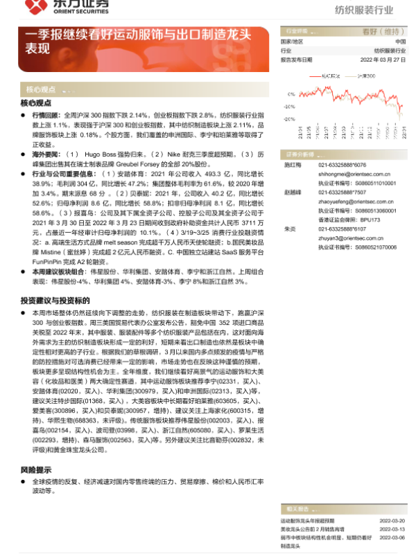 【东方证券】【20220327】20220327-东方证券-纺织服装行业周报:一季报继续看好运动服饰与出口制造龙头表现-8页