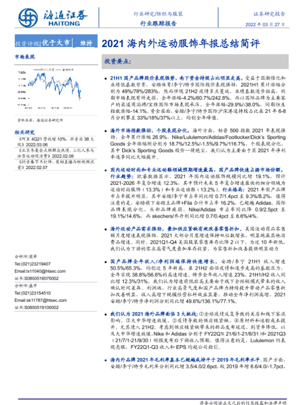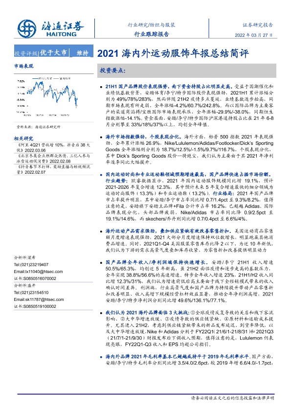 【海通证券】【20220327】2021海内外运动服饰年报总结简评-3页