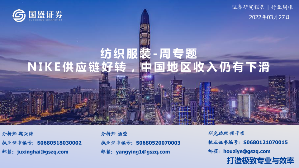 【国盛证券】【20220327】20220327-国盛证券-纺织服装-周专题:NIKE供应链好转,中国地区收入仍有下滑-15页
