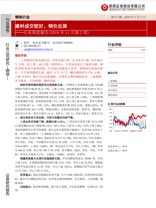 【浙商证券】【20191117】20191117-浙商证券-钢铁行业周度报告(2019年11月第2周):建材成交较好,钢价反弹-16页