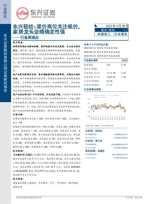 【东兴证券】【20220328】东兴轻纺:浆价高位关注纸价,家居龙头业绩确定性强——行业周观点-11页