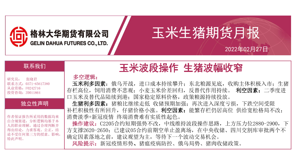 【格林大华期货】【20220227】玉米生猪期货月报:玉米波段操作,生猪波幅收窄-15页