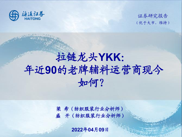 【海通证券】【20220409】拉链龙头YKK:年近90的老牌辅料运营商现今如何?-20页