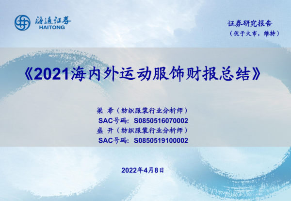 【海通证券】【20220408】2021海内外运动服饰财报总结-18页