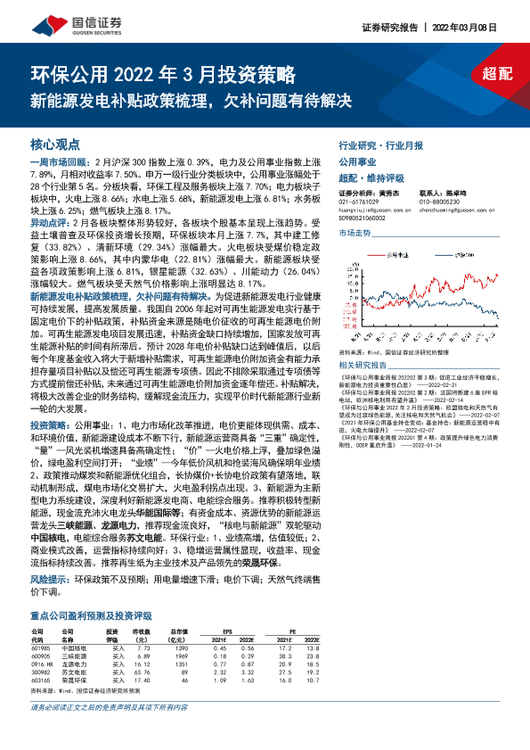 【国信证券】【20220308】环保公用2022年3月投资策略:新能源发电补贴政策梳理,欠补问题有待解决-30页
