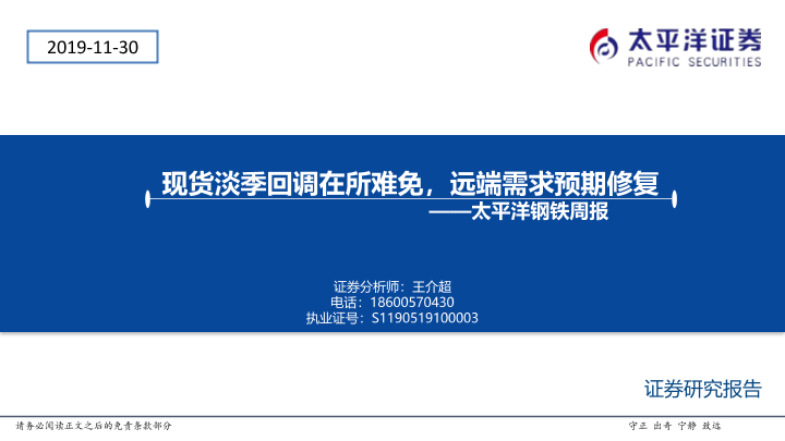 【太平洋证券】【20191130】20191130-太平洋-钢铁周报:现货淡季回调在所难免,远端需求预期修复-47页