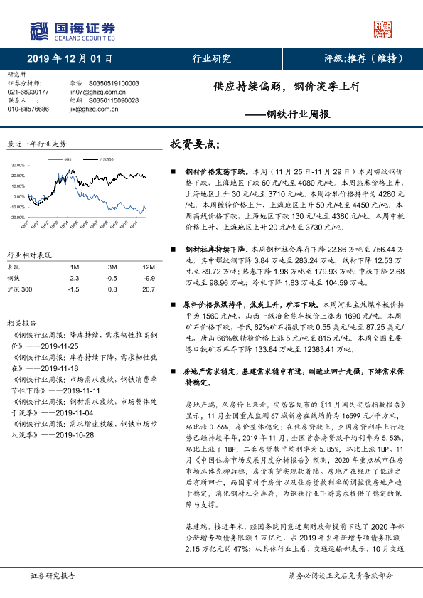 【国海证券】【20191201】供应持续偏弱,钢价淡季上行-15页