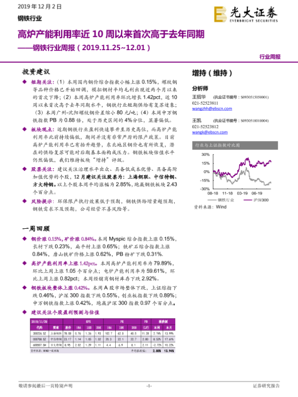 【光大证券】【20191202】钢铁行业周报:高炉产能利用率近10周以来首次高于去年同期-8页