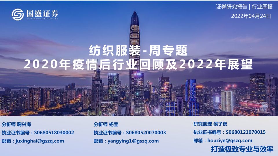 【国盛证券】【20220424】20220424-国盛证券-纺织服装-周专题:2020年疫情后行业回顾及2022年展望-18页