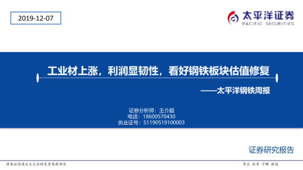 【太平洋证券】【20191207】20191207-太平洋-钢铁周报:工业材上涨,利润显韧性,看好钢铁板块估值修复-46页