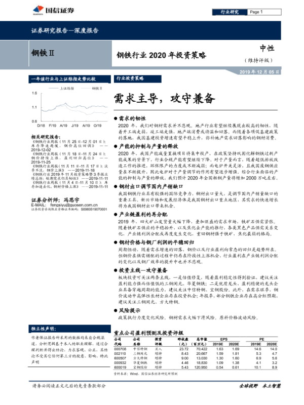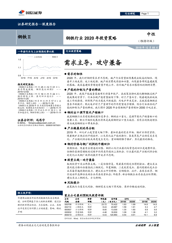【国信证券】【20191205】钢铁行业2020年投资策略:需求主导,攻守兼备-32页