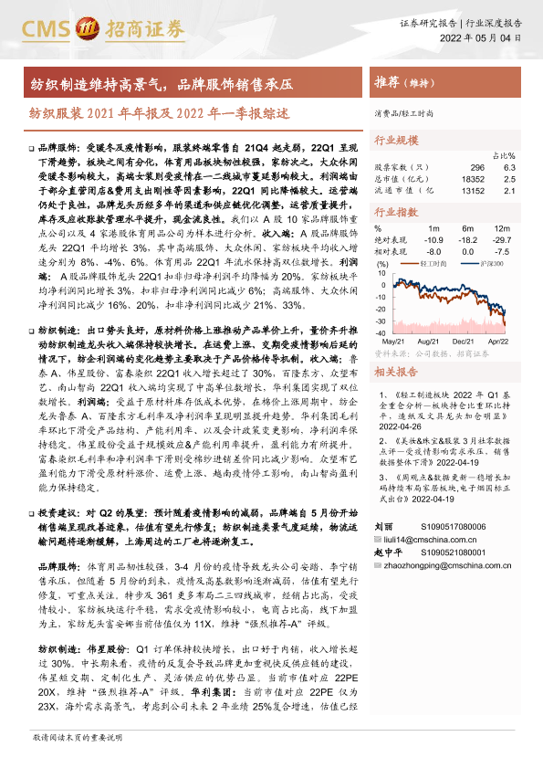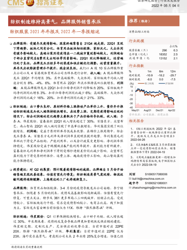 【海通证券】【20220504】纺织服装2021年年报及2022年一季报综述-18页