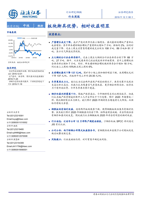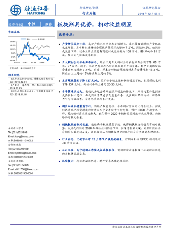 【海通证券】【20191208】20191208-海通证券-钢铁行业周报:板块渐具优势,相对收益明显-14页