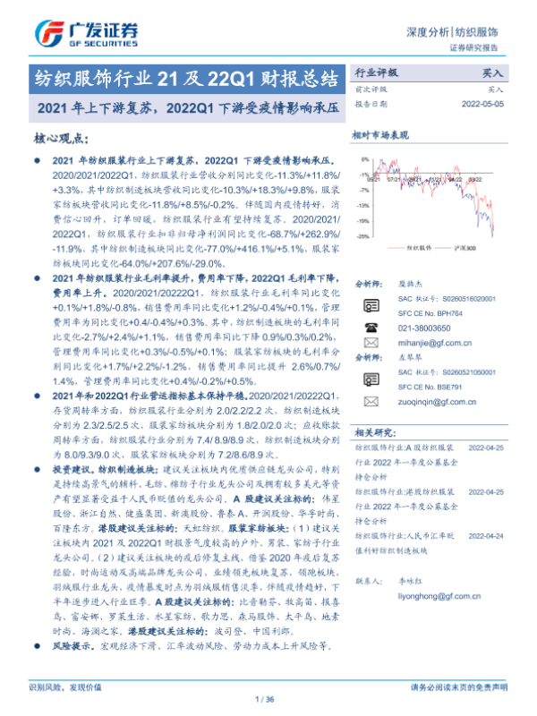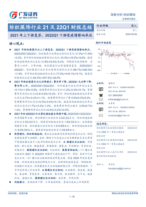 【广发证券】【20220505】纺织服饰行业21及22Q1财报总结-36页