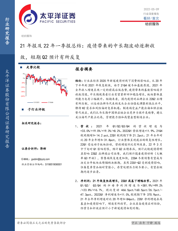 【太平洋证券】【20220509】21年报及22年一季报总结:疫情带来的中长期波动逐渐收敛,短期Q2预计有所反复-19页