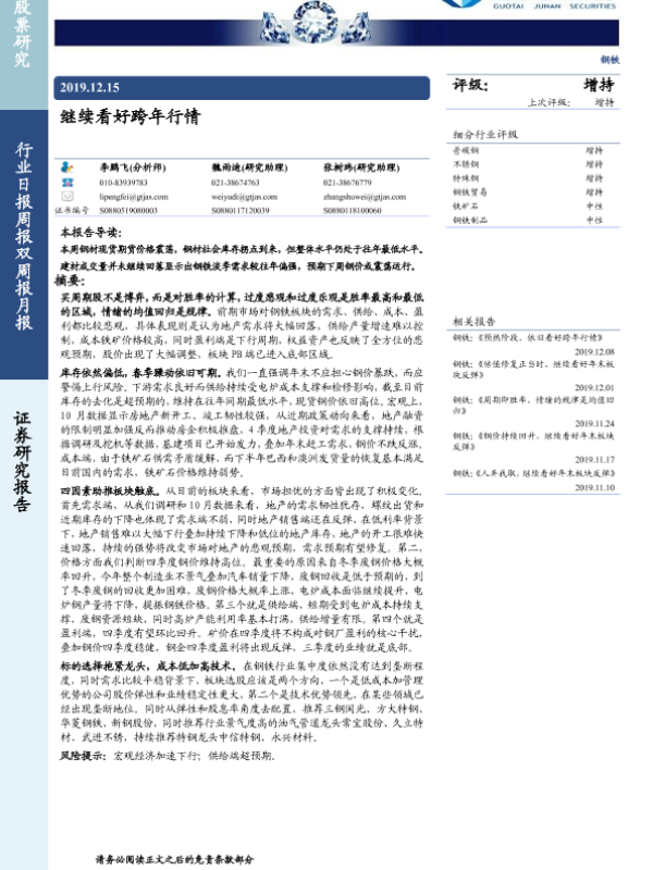 市场预期 库存分析 跨年行情 钢材价格 钢铁行业