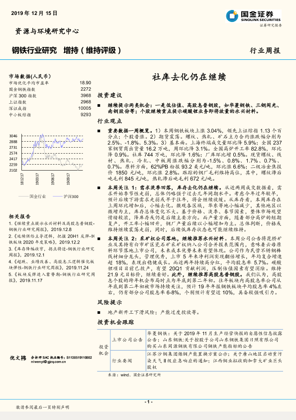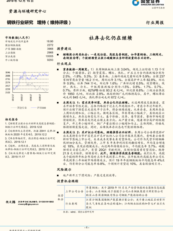 【国金证券】【20191215】20191215-国金证券-钢铁行业研究周报:社库去化仍在继续-10页