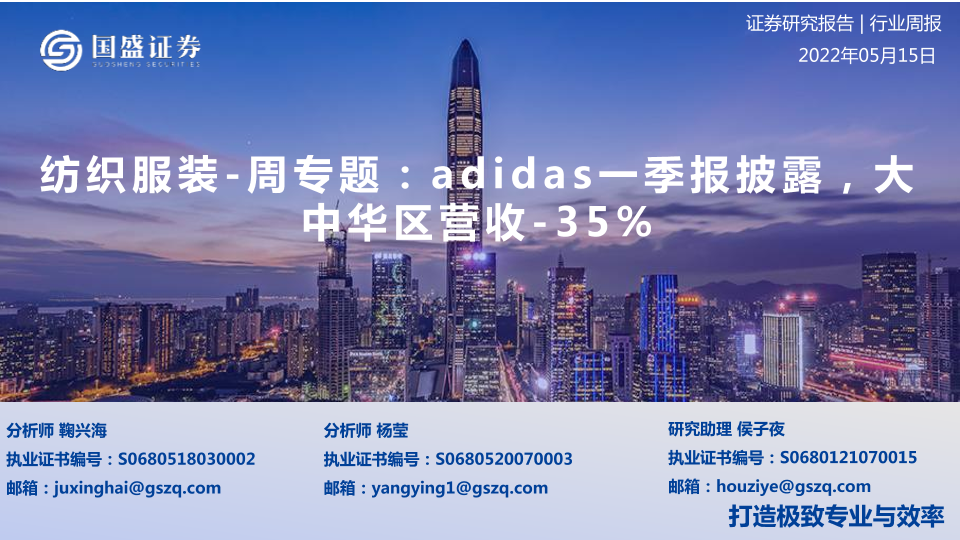 【国盛证券】【20220515】20220515-国盛证券-纺织服装周专题:adidas一季报披露,大中华区营收-35%-15页